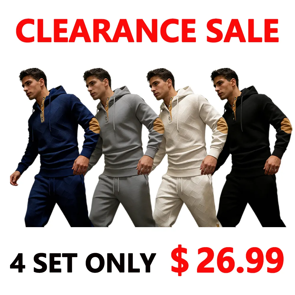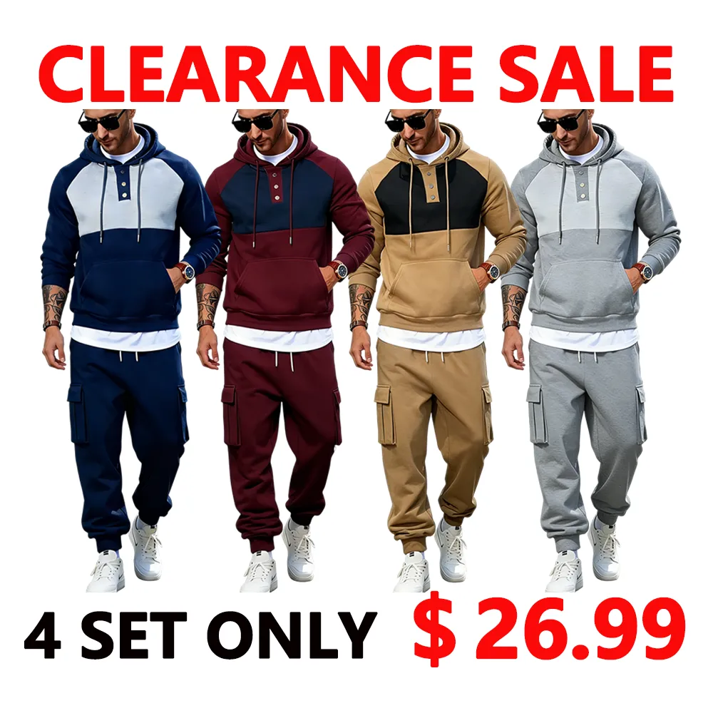 Clearance sale!Men’s Winter Fleece-Lined Set – Casual 2-Piece Hooded Running Sport Suit Sets-Pocket Jacket & Pants