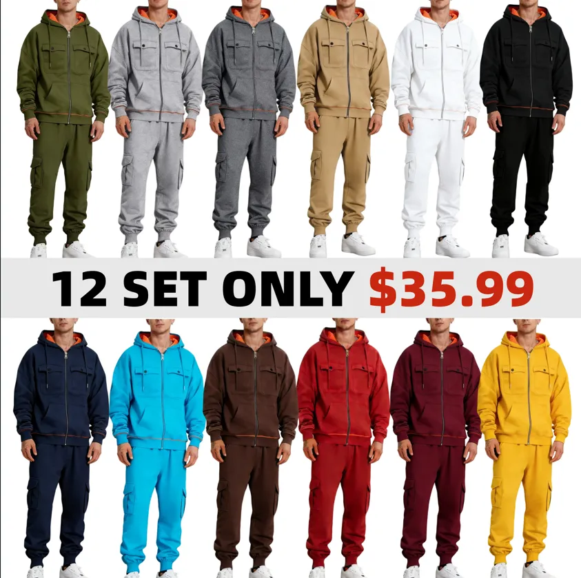 Clearance sale Men's sweatshirt with multiple pockets warm and stylish-Jacket & Pants