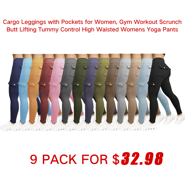 Cargo Leggings with Pockets for Women, Gym Workout Scrunch Butt Lifting Tummy Control High Waisted Womens Yoga Pants