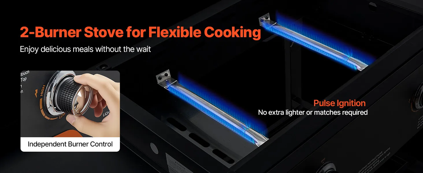 - Dual-Zone Cooking: This propane gas bbq griddle features two burners with a total output of 30000 BTU, allowing precise temperature control across separate zones. Cook low-and-slow dishes while searing burgers at high heat, handling diverse recipes effortlessly in one session
