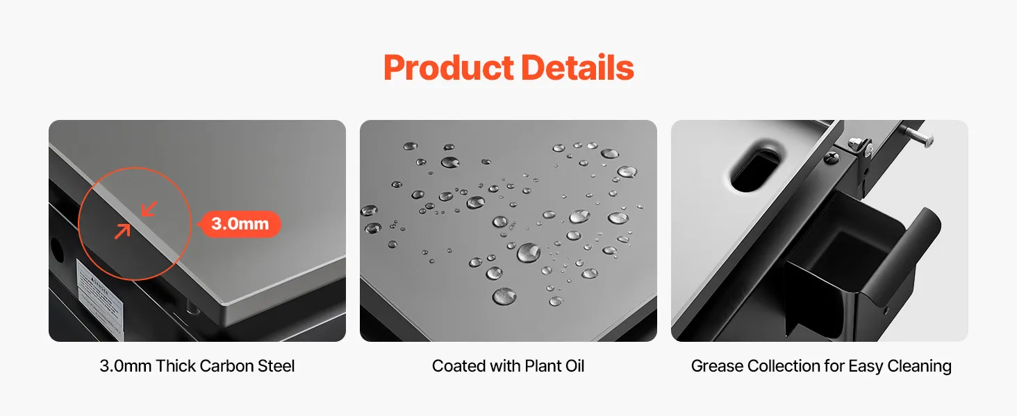 Made with durable carbon steel, this outdoor griddle offers solid strength for long-term use. The surface comes pre-coated with plant oil to reduce rust and support cleaner cooking. A built-in grease collection system makes cleanup simple after every meal.