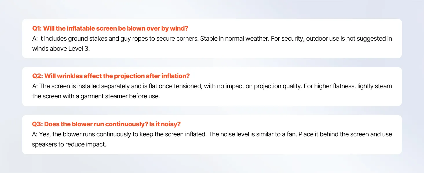 - Expansive Viewing Angle: With its wide-angle design, our inflatable screen allows multiple people to enjoy movie nights simultaneously. No matter where you sit, you can easily enjoy a wide viewing angle, immersing yourself in a comprehensive audio-visual experience