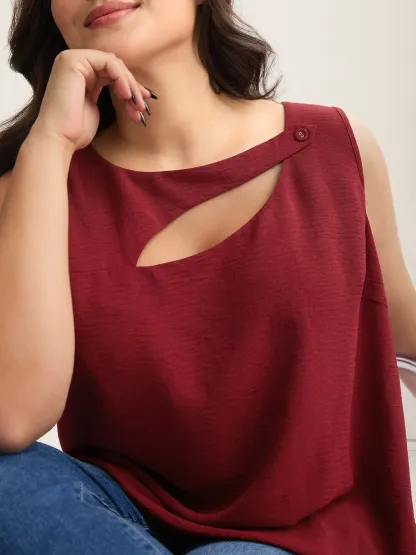 Asymmetrical Neckline Cut-Out Solid Tank Top