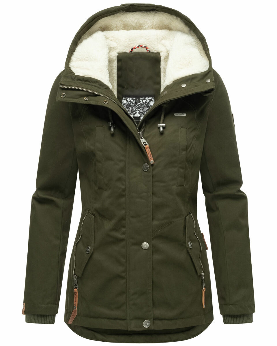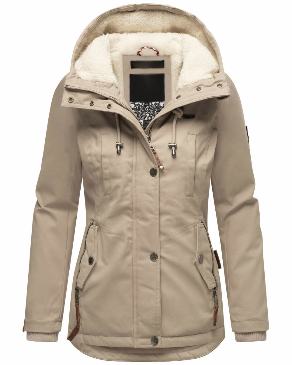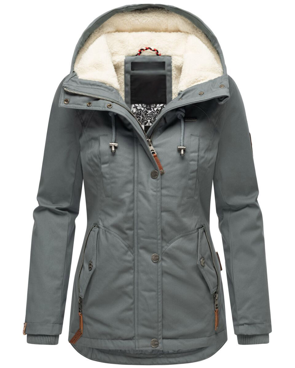 Het bovenste deel van de jas is aan de binnenkant voorzien van behaaglijk, warm teddybont. Ook de binnenkant van de capuchon is voorzien van wollige, warme teddybont.