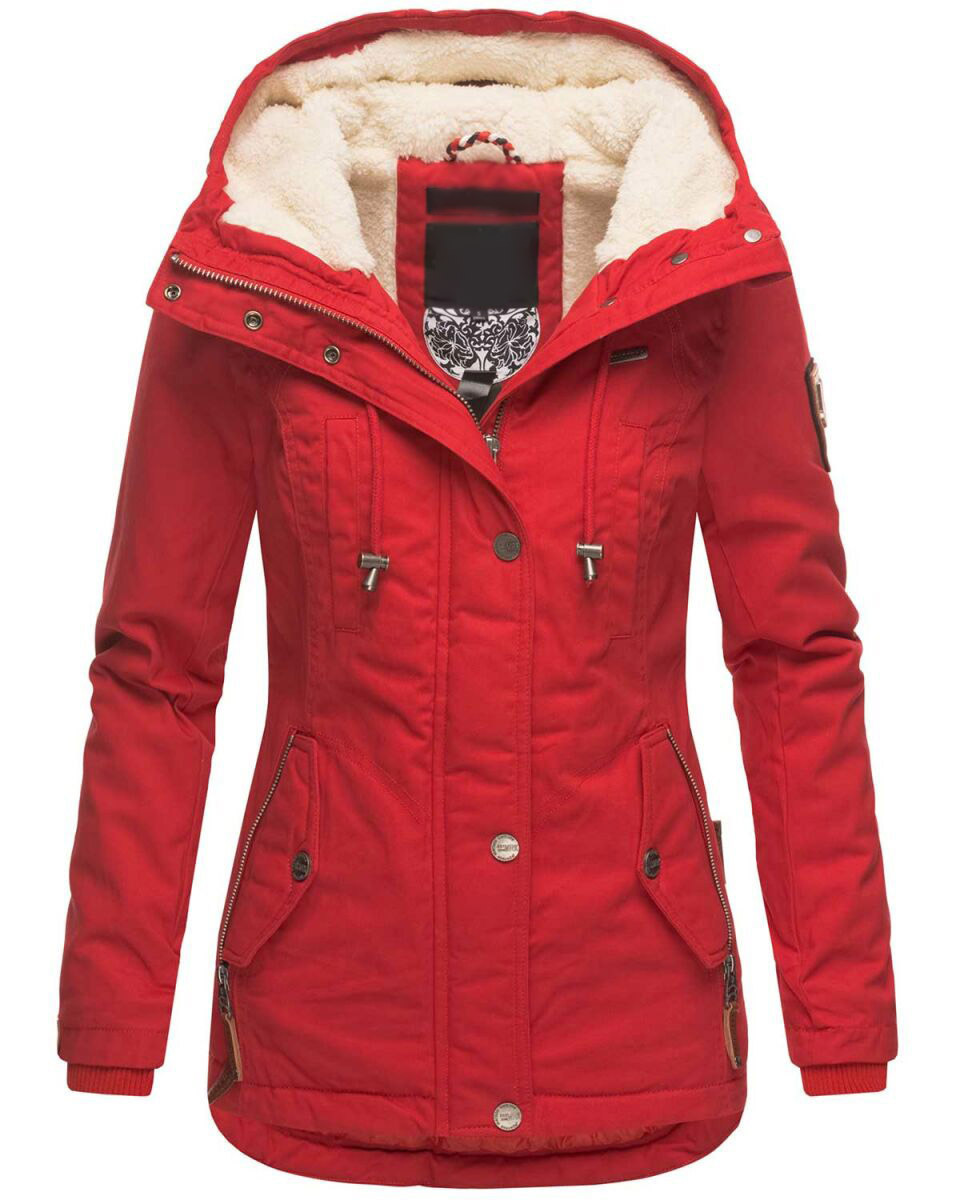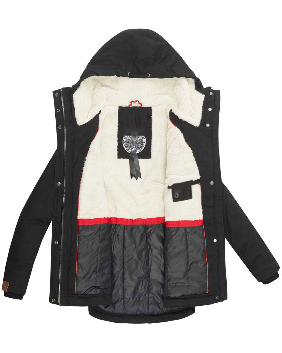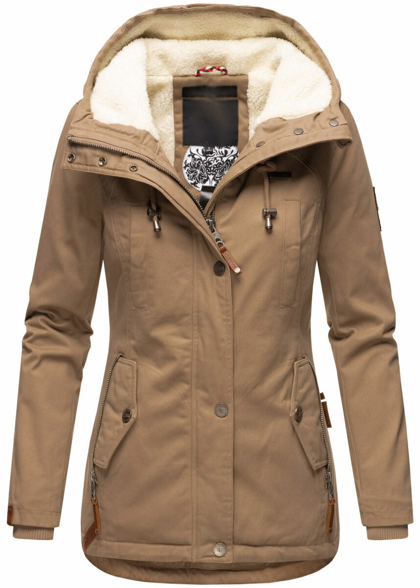Het bovenste deel van de jas is aan de binnenkant voorzien van behaaglijk, warm teddybont. Ook de binnenkant van de capuchon is voorzien van wollige, warme teddybont.