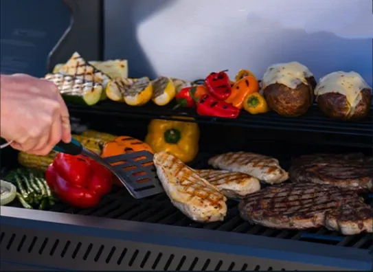 Enjoy tender, evenly cooked food with fewer flare-ups. Porcelain-coated grates and wider heat tents work together in our Cooking System to lock in juices and flavor.
