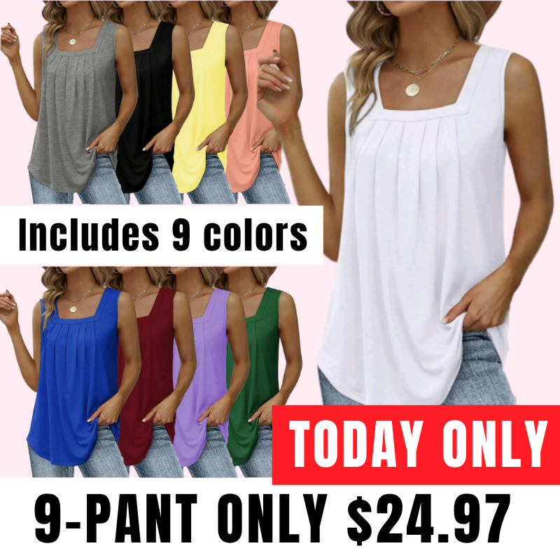 ✦Design: Square neck tank tops with pleat in front, curved hem and loose fit. It's flattering and flowy to hide the stomach which suitable for any body shape.