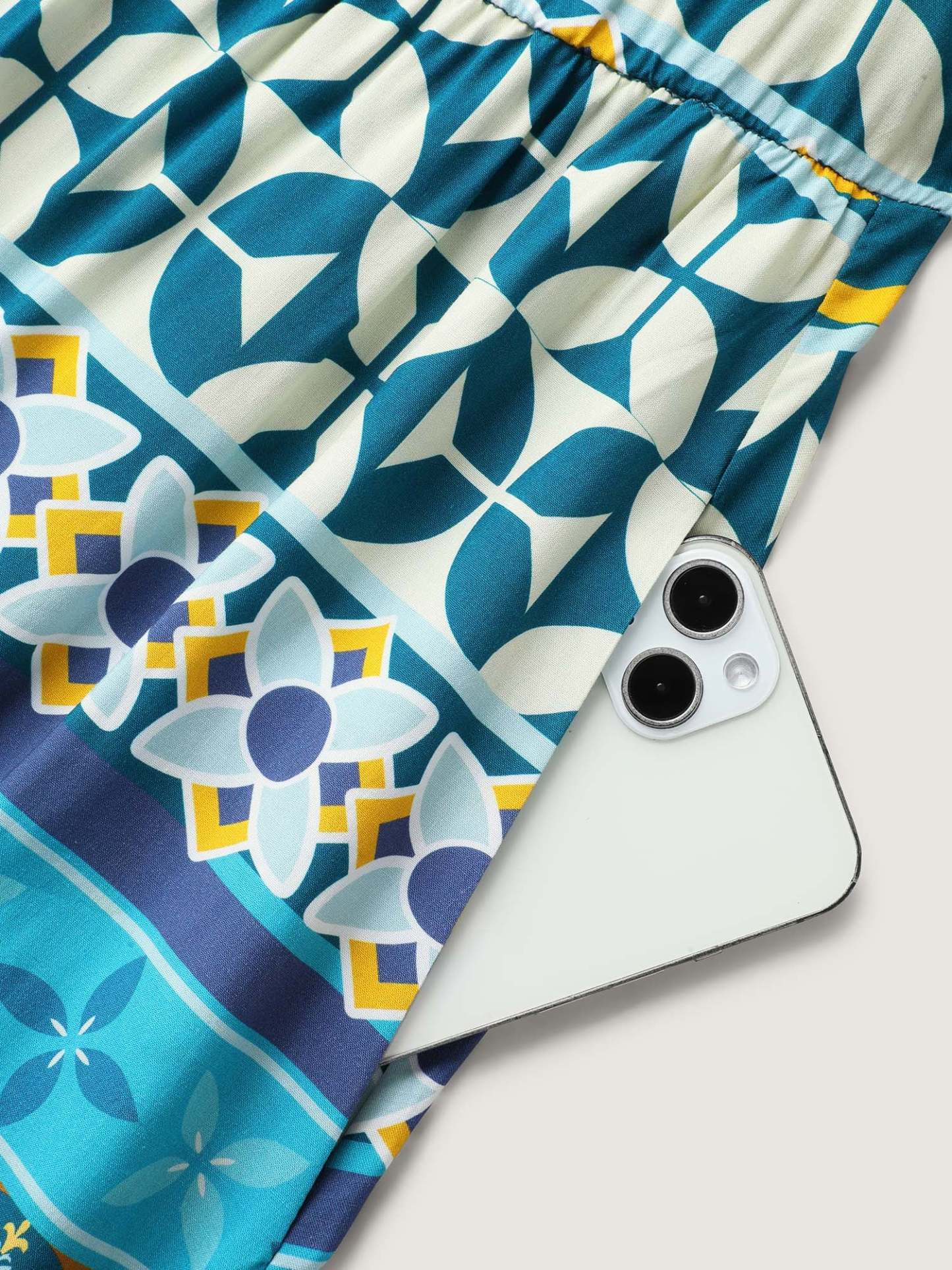 Rayon Boho Stretchy Waist Pockets Midi Dress