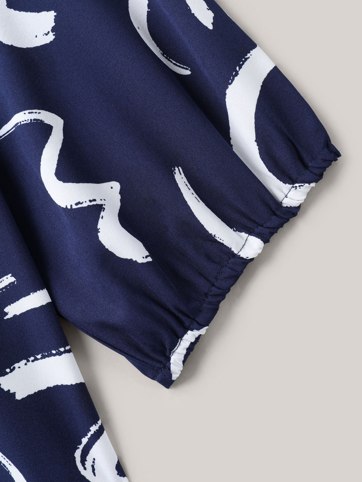 Scribble Print Ruffled Split Neck Blouse